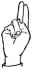 На ћирилици написано КРИСТИНА МРЂА састоји се из 12 слова [?]. Исписано ћириличном једноручном азбуком за глувонеме: